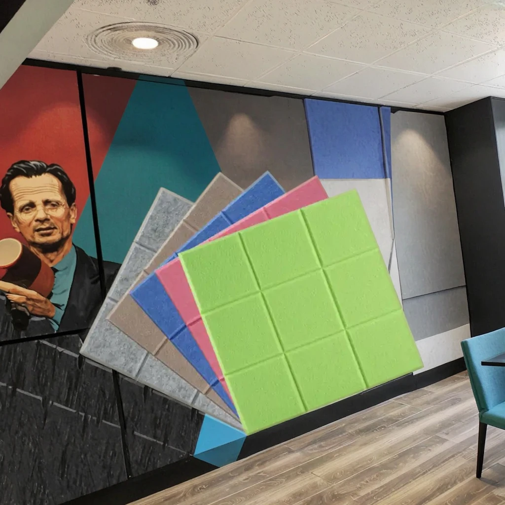2. Tagann na painéil cearnóga seo le ainm brándáin fíorúil, Qingyin, a bhfuil cáil air as a cháilíocht ard. Soláthraíonn na painéil acustacha insilíocht fuaime ardfheidhme, le coimhiúin laghdaithe gutha (NRC) de 1.0.