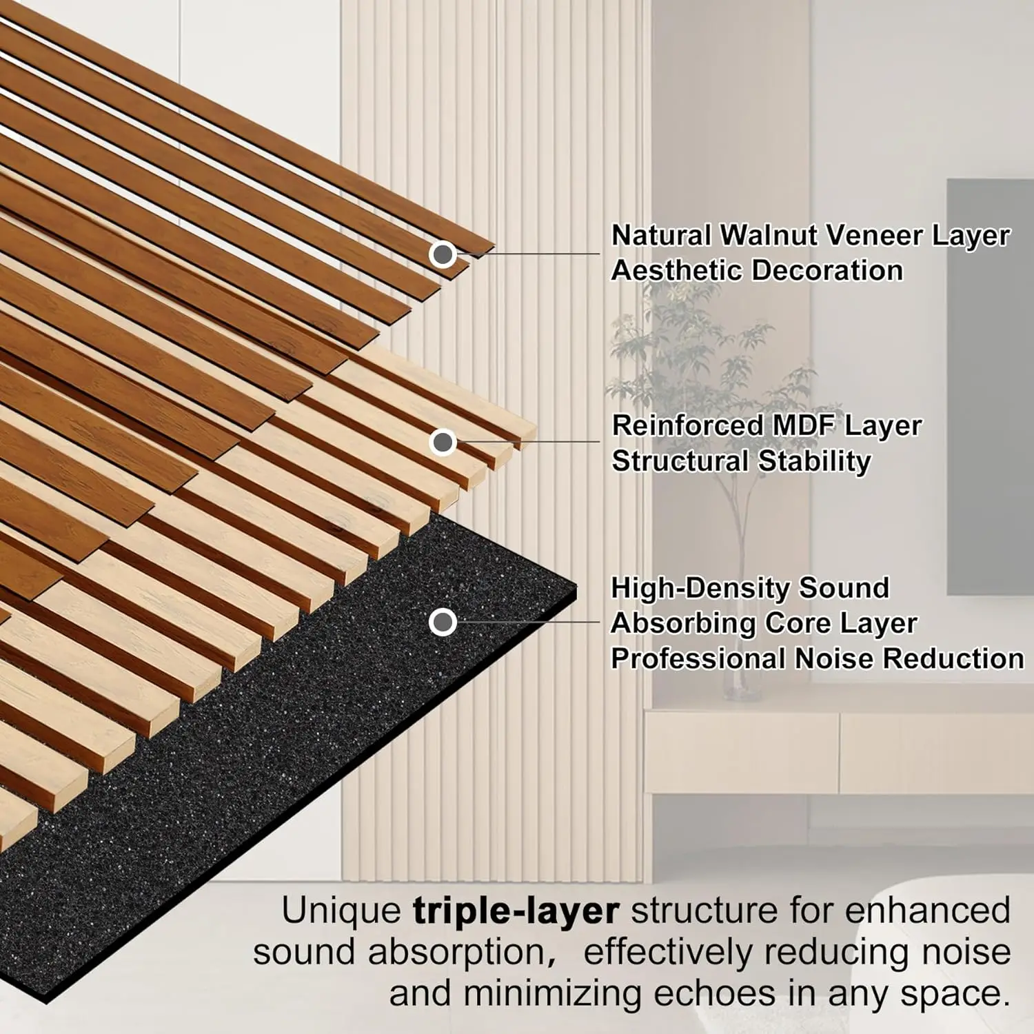 2-Pack 3D Textured Acoustic Wood Panels Walnut 47.3 X 23.6x 0.62 Inch Soundproof Wall Acoustic Slat Wood Panels