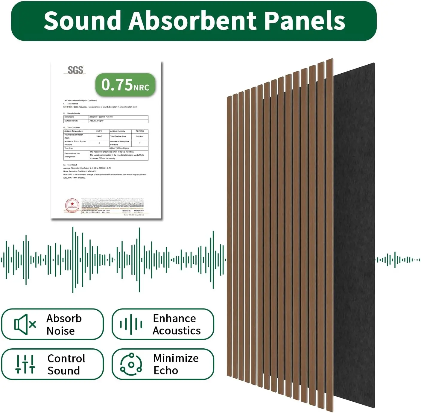 2-Pack 3D Textured Acoustic Wood Panels Walnut 47.3 X 23.6x 0.62 Inch Soundproof Wall Acoustic Slat Wood Panels