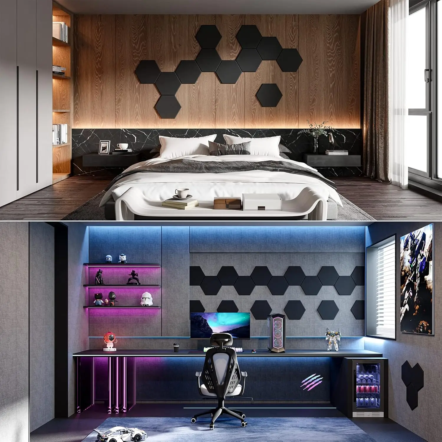High Density 30*30cm Self-Adhesive Acoustic Panels 12 Pack Stylish Hexagonal Design Flame Resistant Living Room Bedroom Hotel details