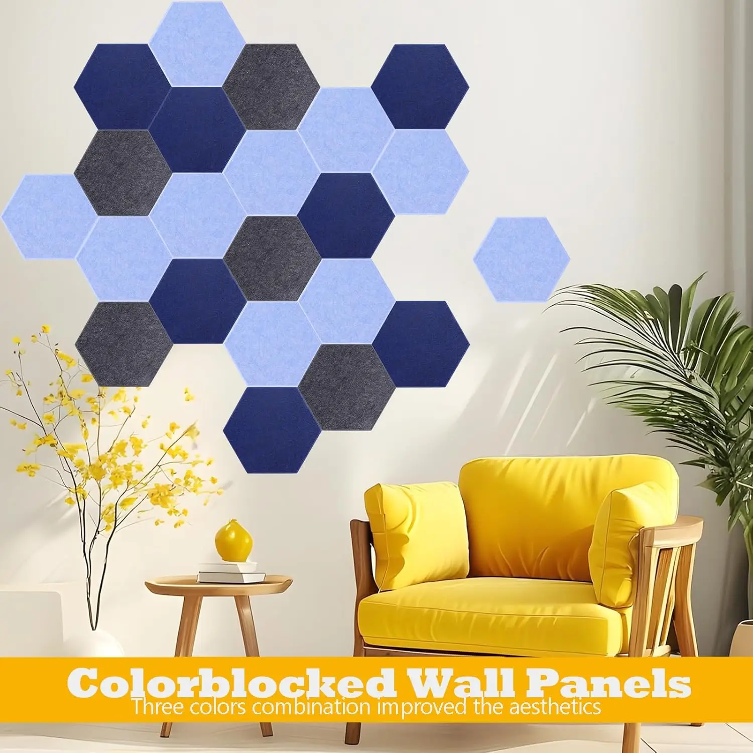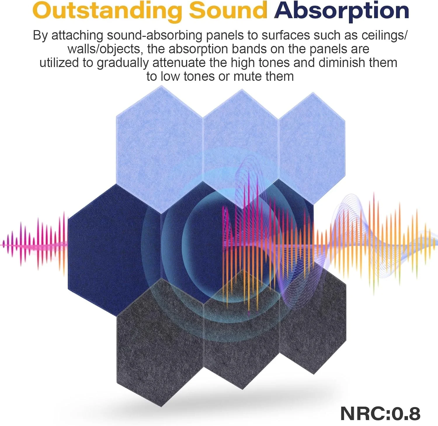Large 12-Pack 14x12x0.4 Inches Self-Adhesive Hexagon Acoustic Panels Modern Design Wall Soundproof Dampening for Bedroom Walls