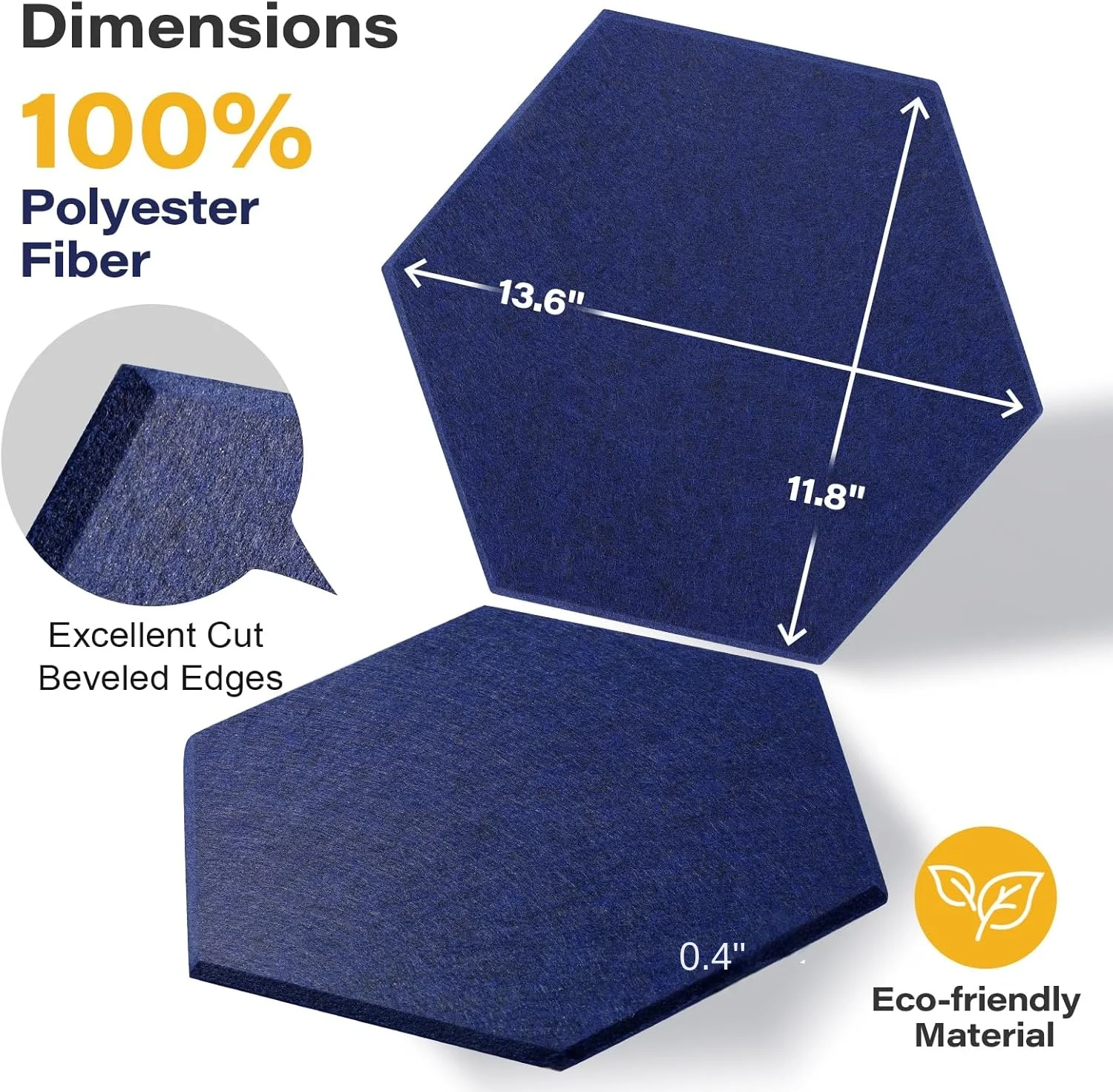 Large 12-Pack 14x12x0.4 Inches Self-Adhesive Hexagon Acoustic Panels Modern Design Wall Soundproof Dampening for Bedroom Walls details