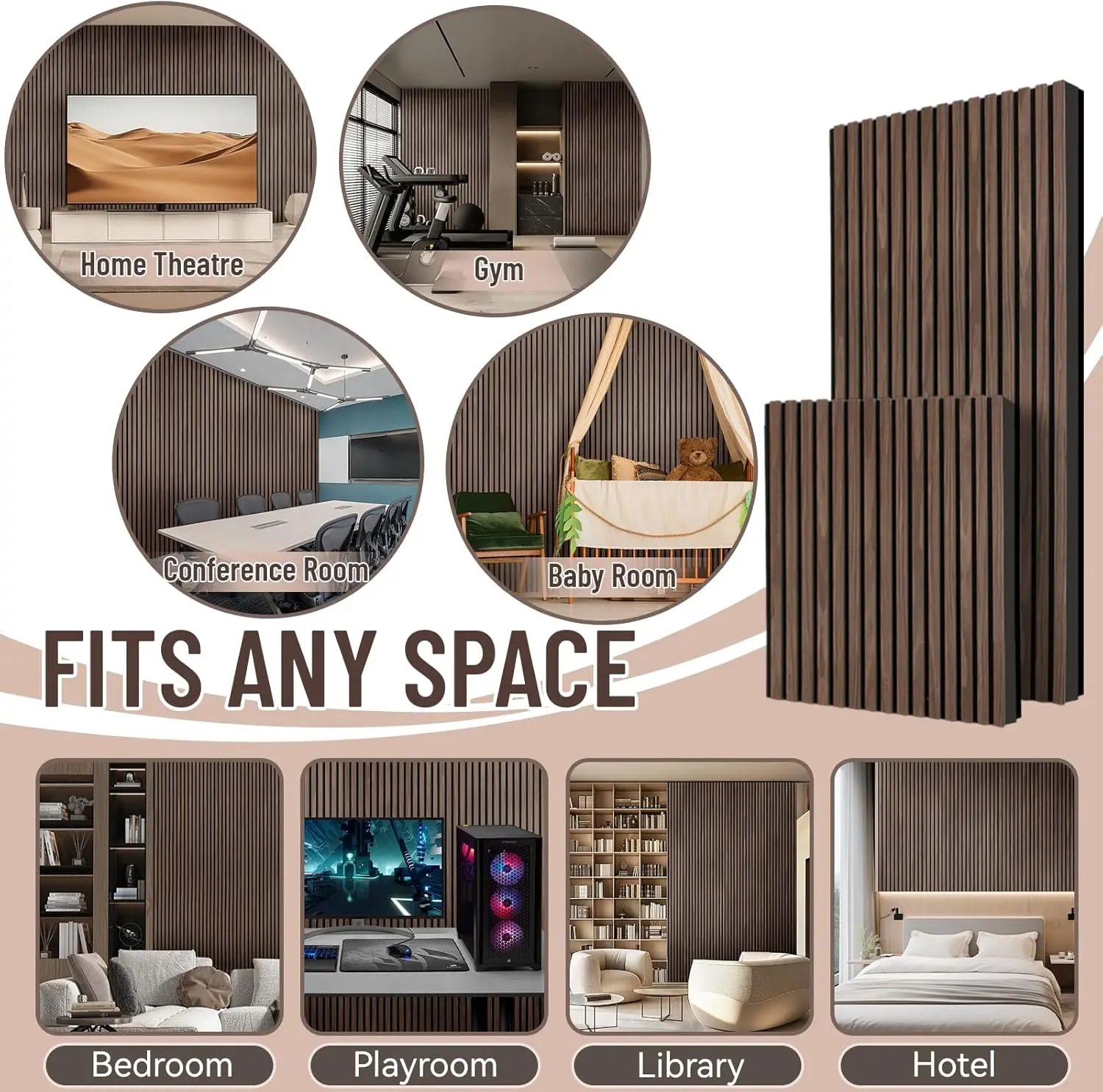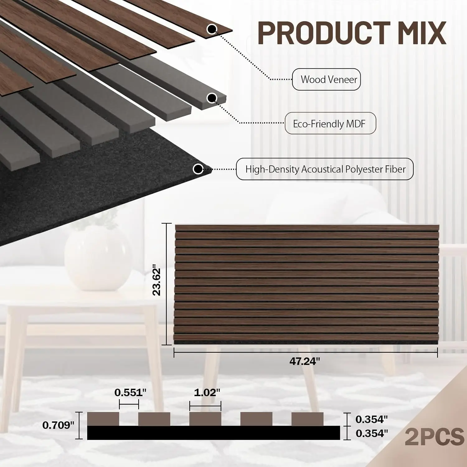 2-Pack 3D Textured Acoustic Wood Panels Walnut 47.3 X 23.6x 0.62 Inch Soundproof Wall Acoustic Slat Wood Panels